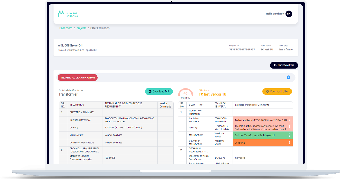 Engineers can upload material requisitions and supplier technical responses. Rudy will compare them to highlight discrepancies.